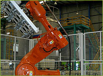 For bag, carton & pails complete with product & pallet conveyors, robot base, gripper, pallet dispenser, slip sheet dispenser, carton erector, auto carton sealer, auto packer.